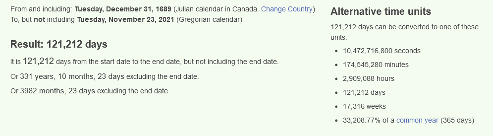Or 21 years, 3 months, 16 days excluding the end date.
