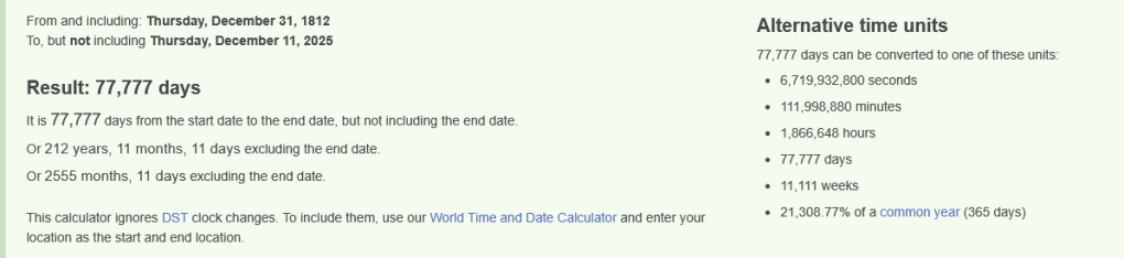 Day 77777 + 118 Days = Day 77895.